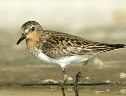[형태] 몸길이 15cm. 암수의 빛깔은 같다. 여름에는 등은 밤색을 띤 갈색으로 얼룩진다. 멱과 가슴 옆에 밤색 반점이 흩어져 있으며 배는 흰색이다. 겨울에 등의 밤색은 회색으로 대치되나 어깨에는 얼마간의 밤색 부분이 그대로 남아 있는 것이 보통이다. 겨울깃의 머리꼭대기, 등, 날개에는 흰색과 회색의 작은 반점이 있고, 목 아래, 가슴, 배는 흰색을 띠고 있다. 부리와 다리는 검은색이다.