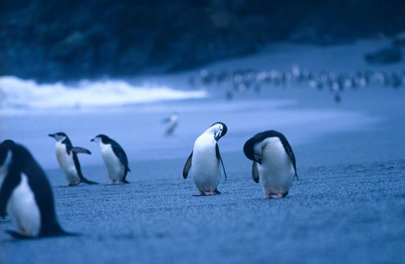 Chinstrap penguins on beach