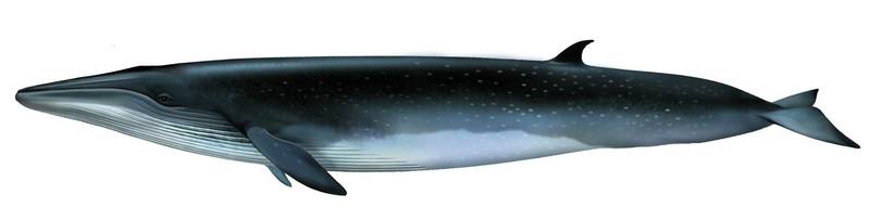 -등지느러미는 높이가 45∼50cm로 보리고래 보다 작고 참고래와 같이 약간 후방 (체장의 2/3 후방)에 위치한다.