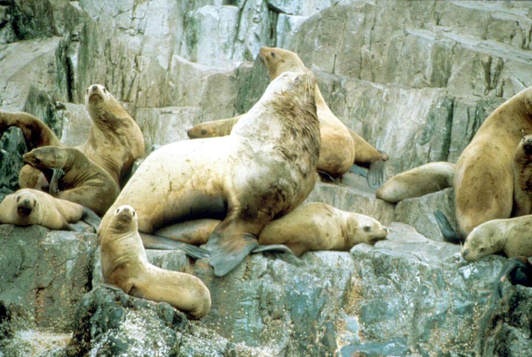 Steller Sea Lion group (Eumetopias jubatus) {!--큰바다사자--> From the U.S. Fish and Wildlife Service's online digital media library.