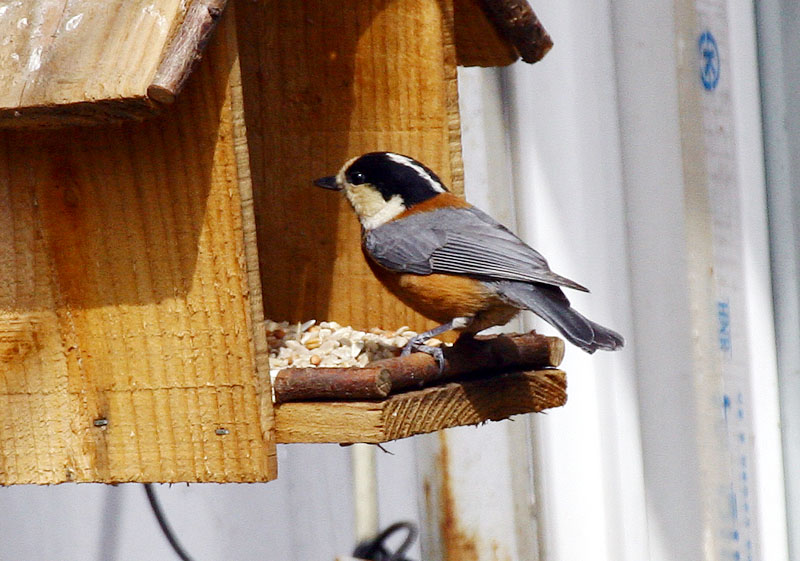 돌배나무에 달아준 둥지에 보금자리를 정하고 연신 먹이를 물어나르는 곤줄박이.