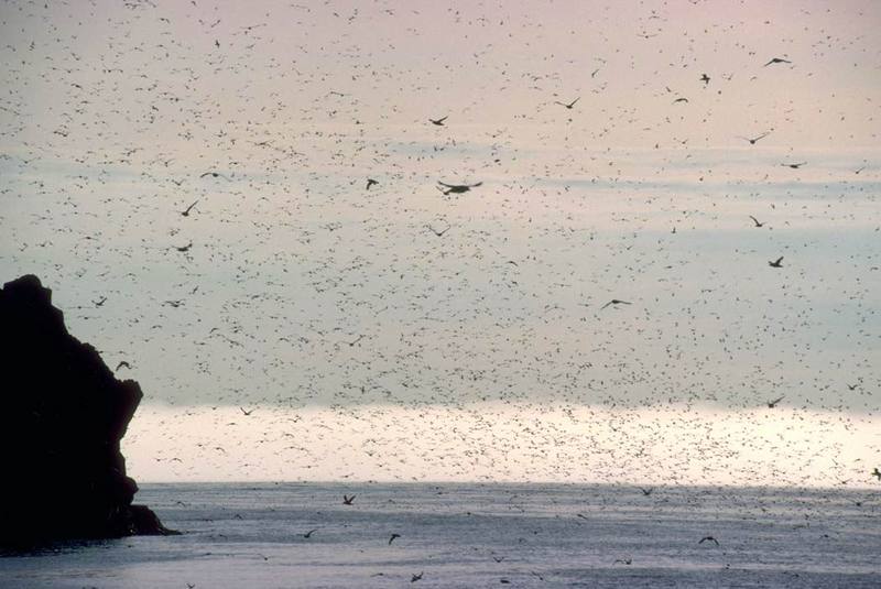 Northern Fulmar flock (Fulmarus glacialis) {!--북방풀머갈매기--> From the U.S. Fish and Wildlife Service's online digital media library.