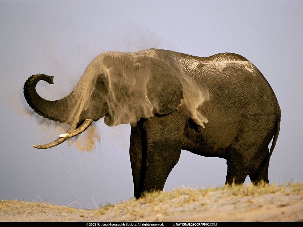 "Dust baths...soothe the irritation of an elephant's day."
