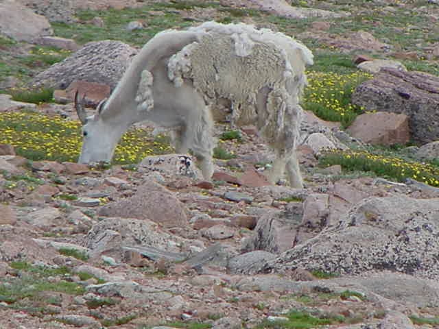 Rocky Mountain Goat Goat shedding winter fur coat.